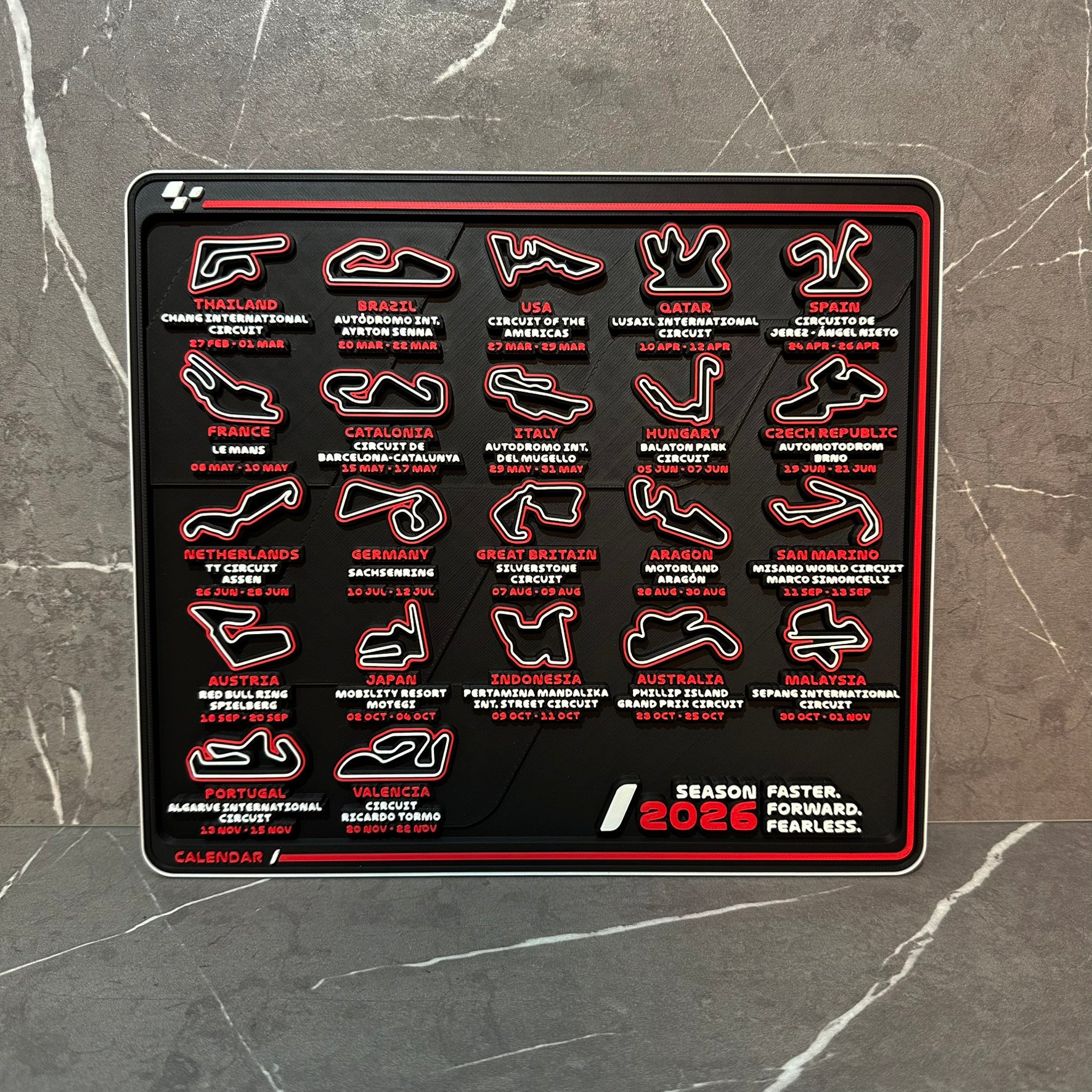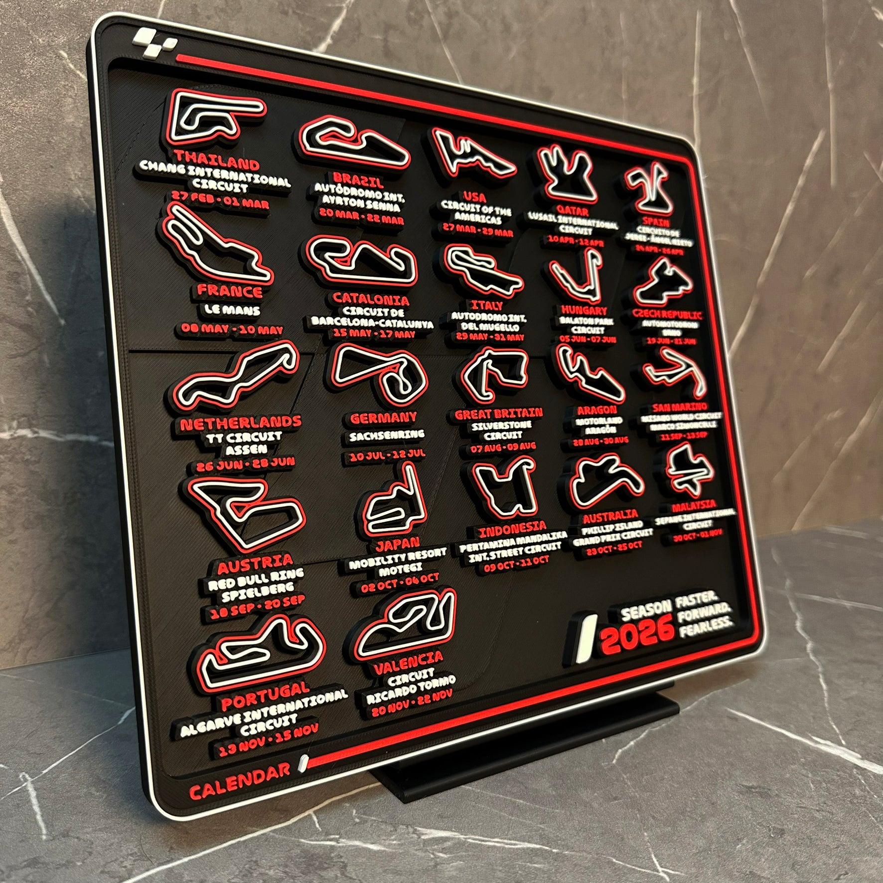 Ha a kétkerekű versenyek világa rabul ejtett, ez a stílusos naptár nem hiányozhat a gyűjteményedből! A 2026-os szezon minden futama egy helyen - nemcsak praktikus, hanem látványos dekoráció is, ami garantáltan magára vonja a tekintetet.